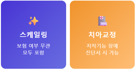 - 스케일링: 건강보험 적용 여부와 관계없이 모두 포함됩니다.