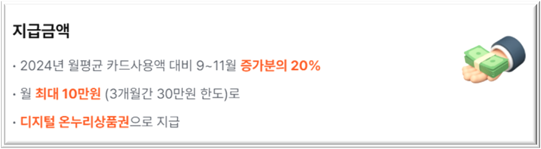 특히, 복잡한 서류 제출 없이 단 한 번의 신청으로 3개월간의 소비 증가분을 지급받을 수 있다는 점이 이 제도의 큰 장점입니다.