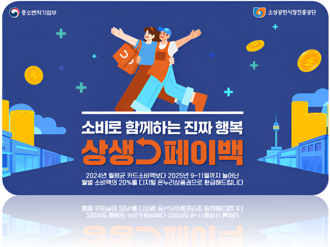 상생페이백은 정부가 민생 회복과 소비 활성화를 위해 추진하는 특별한 정책입니다. 이는 지난 해(2024년)보다 올 가을(2025년 9월부터 11월)에 신용/체크카드 사용액을 늘린 경우, 증가분의 20%를 디지털 온누리상품권으로 환급해 주는 제도입니다.