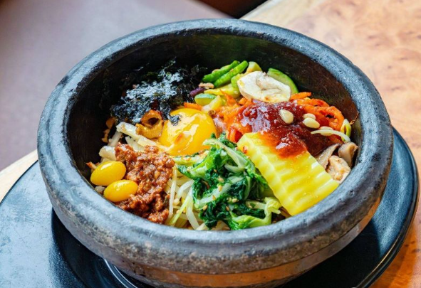 50년이 넘는 역사를 지닌 곳이라니, 그 이름만으로도 기대감이 컸습니다. 식당에 들어서자 깔끔하고 정돈된 분위기가 느껴졌습니다. 이곳에서는 비빔밥을 주문할 때 놋그릇과 돌솥 중에서 선택할 수 있다는 점이 흥미로웠습니다. 저는 따뜻한 돌솥 비빔밥을 선택했는데, 지글거리는 소리와 함께 풍성한 재료들이 어우러져 먹음직스러웠습니다.