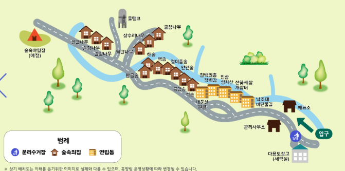 휴양림 내에는 숙소별로 지정된 주차 공간이 있습니다. 안내소에서 입장 확인 후, 안내원의 지시에 따라 주차하면 됩니다. 특히 주말에는 차량이 많으니 일찍 도착하는 것을 추천합니다.