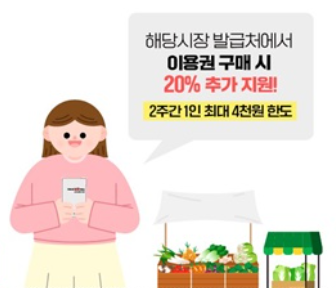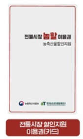 전통시장에서 할인 혜택을 받기 위해서는 이용권(카드)을 구매해야 해요. 이 카드로 결제할 경우 정부의 추가 지원을 받을 수 있습니다.