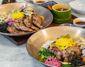 대표 메뉴인 떡갈비 국수 세트는 부드러운 떡갈비와 고소한 들기름 국수의 조화가 일품입니다. 아보카도 육회비빔밥도 신선한 육회와 다양한 토핑이 어우러져 많은 분들이 찾는 메뉴라고 해요. 바삭한 김과 함께 비벼 먹으면 더욱 맛있습니다. 매콤한 맛을 선호하시면 고추기름을 추가해서 드셔보세요!