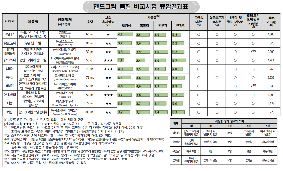 겨울철에는 핸드크림이 필수입니다. 핸드크림 각각의 특징을 비교해 보시고,