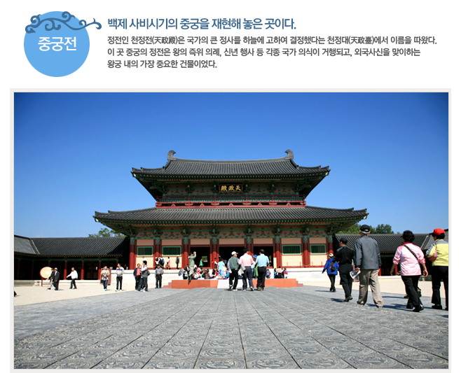 - 백제왕궁 복원: 이곳에서는 백제의 왕궁을 재현한 공간을 통해 고대 왕실의 생활을 체험할 수 있습니다. 왕궁 내부의 전시물과 재현된 공간은 과거의 생활상을 생생하게 느끼게 해 줍니다.