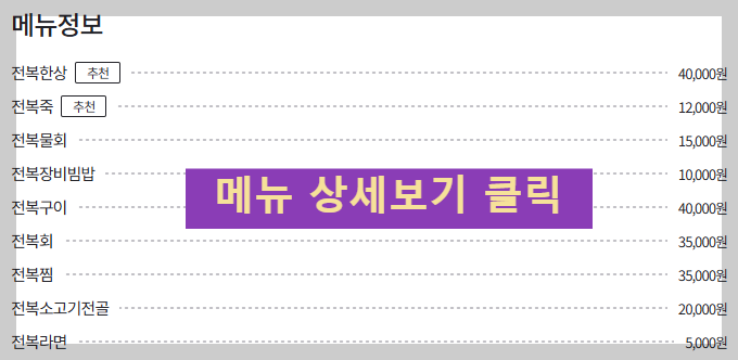명품전복궁의 대표 메뉴인 '전복 코스 한상'은 1인 4만 원으로, 다른 전복 코스 요리들이 5만 원 이상인 점을 고려하면 매우 가성비가 좋습니다.