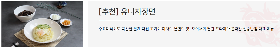 신승반점의 시그니처 메뉴는 단연 유니짜장입니다. 곱게 다진 고기와 신선한 채소가 어우러진 짜장 소스는 깊고 풍부한 맛을 자랑합니다. 일반 짜장면과는 다른 부드러운 식감과 진한 풍미가 일품이죠.
