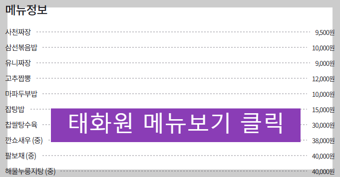 태화원은 인천시 향토음식지점으로 '향토짜장'을 내세우고 있더군요. 어떤 맛일지 궁금했습니다. 메뉴판을 보니 다양한 짜장면과 요리들이 있었습니다.