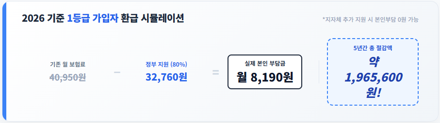 2026년 기준, 1등급 가입자가 매월 환급받는 금액을 예시로 계산해 보았습니다.