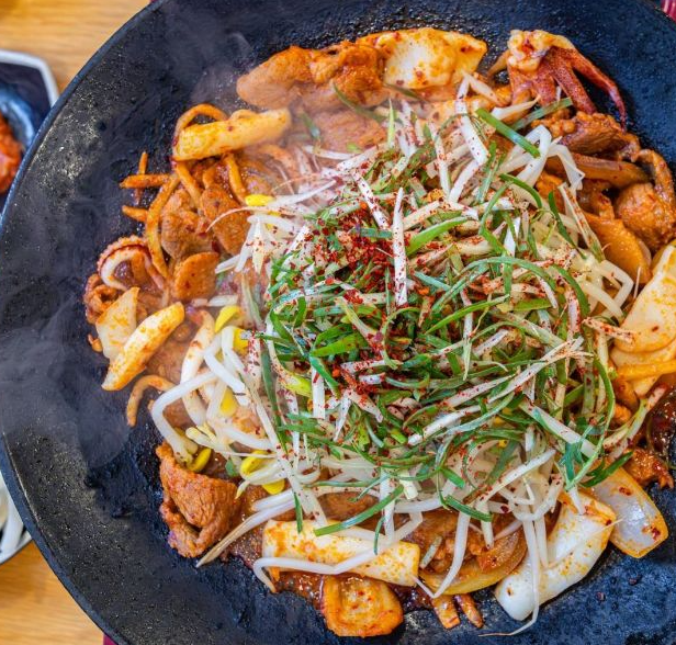 먼저, 제주산 흑돼지를 사용한 두루치기는 신선하고 고기의 풍미가 진해 정말 만족스러웠습니다. 1차 조리가 주방에서 완료된 상태로 나오기 때문에 바로 먹어도 좋고, 테이블에서 콩나물과 파채를 추가해 한 번 더 익혀 먹으니 식감과 맛이 더 살아났습니다.