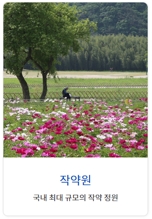 - 다양한 정원: 작약, 안개꽃, 핑크뮬리 등 계절별로 아름다운 꽃들이 피어나는 정원들이 있습니다.