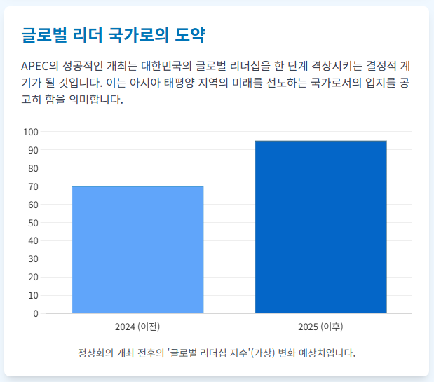 2025년 APEC 정상회의는 대한민국과 아시아 태평양 지역의 지속 가능한 미래를 논의하는 중요한 전환점이 될 것입니다.
