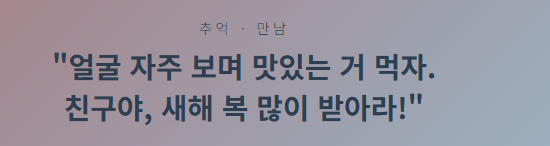 추천 문구 02: "세월은 흘러도 우리 우정은 변치 말자. 올해는 너의 가정에 웃음꽃만 피어나길 진심으로 바란다. 언제든 술 한잔 생각나면 연락해라!"