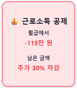 ✅ 근로소득: 매달 버는 돈에서 115만 원을 빼고, 남은 금액의 30%를 또 빼줍니다.