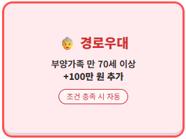 - 경로우대공제: 부양가족이 만 70세 이상이면 100만 원 추가!