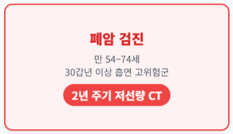 - 폐암 검진: 만 54세~74세 중 '30갑년' 이상의 흡연력을 가진 고위험군은 2년 주기로 저선량 CT 지원!