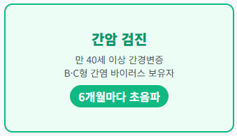 - 간암 검진: 만 40세 이상 간경변증, B형/C형 간염 바이러스 보유자는 6개월마다 초음파 지원!
