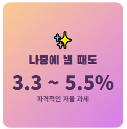 ✔ 저율 과세의 마법 (3.3% ~ 5.5%)