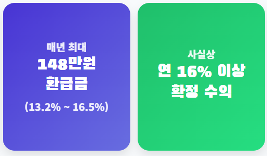 연금저축(연 600만 원 한도)과 IRP를 합치면 연간 최대 900만 원까지 세액공제를 받을 수 있습니다. 소득 수준에 따라 납입액의 13.2%에서 최대 16.5%까지 돌려받는데, 900만 원을 꽉 채울 경우 매년 약 148만 원의 환급금이 발생합니다. 이는 연간 16% 이상의 확정 수익을 얻는 것과 같습니다.
