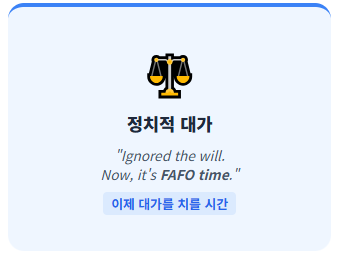 - 🚩 정치적 밈으로 쓰일 때: "They ignored the voters' will for years. Now, it's FAFO time." (그들은 수년간 유권자의 뜻을 무시했어. 이제 대가를 치를 시간이야.)