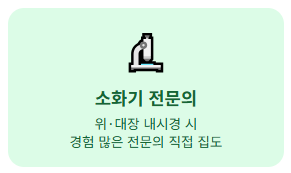 - 소화기 내과 전문의: 위/대장 내시경을 함께 하신다면 경험 많은 소화기 내과 전문의가 직접 집도하는 곳이 가장 중요합니다.