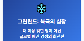 💡 그린란드의 막대한 천연자원과 북극 항로의 경제적 가치에 대해 더 자세히 알고 싶다면?