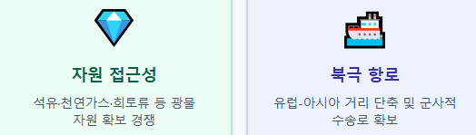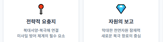 - **자원 및 항로 접근성의 열쇠:** 방대한 영역 안에 희토류를 비롯한 천연자원과 함께, 얼음이 녹으면서 그 중요성이 더욱 부각되는 북극 항로에 대한 접근성을 높여줍니다.