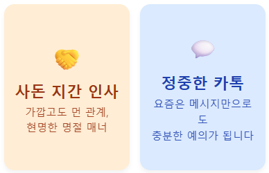 "네, 요즘은 정중한 문구와 함께 보내는 카톡 인사도 충분히 예의에 어긋나지 않습니다. 다만, 평소 교류 빈도에 따라 적절한 형식을 갖추는 것이 핵심입니다."