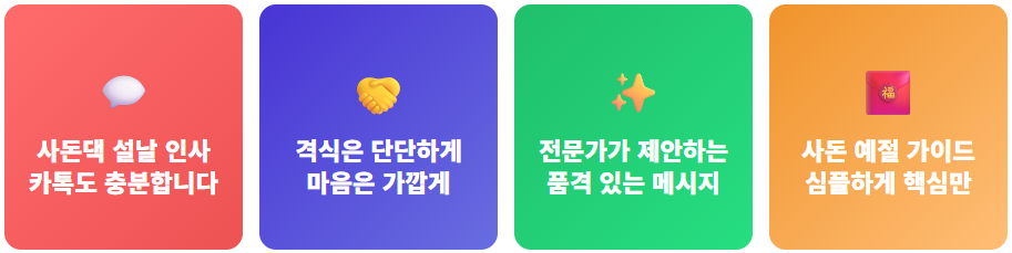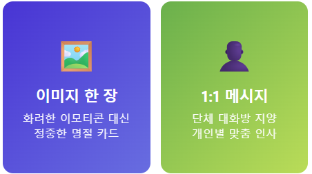 - 이모티콘 사용: 너무 화려하거나 움직이는 이모티콘보다는 정중한 명절 이미지를 한 장 곁들이는 것이 좋습니다.