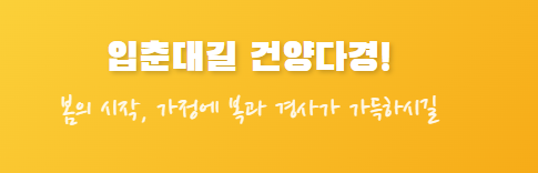 "입춘대길 건양다경! 봄의 시작과 함께 가정에 큰 복이 깃들고 경사스러운 일이 가득하시길 기원합니다."
