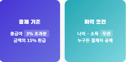 💡 예시: 연봉 7,000만 원인 직장인이라면 의료비로 210만 원(3%) 이상을 써야 그 초과분에 대해 15%를 돌려받습니다. 따라서 병원비 지출이 적은 해에는 가족 중 한 명에게 의료비를 몰아주는 전략이 필요합니다.
