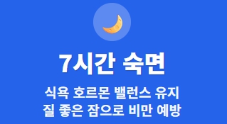 - 충분한 수면: 수면 부족은 식욕 조절 호르몬을 교란시켜 복부 비만을 유발합니다. 하루 7시간 이상의 질 좋은 잠을 확보하세요.