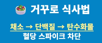 * 거꾸로 식사법: 식이섬유(채소) → 단백질(고기/생선) → 탄수화물(밥) 순서로 식사하면 혈당 스파이크를 효과적으로 막을 수 있습니다.