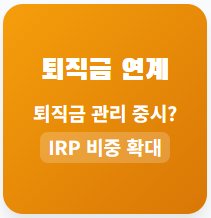 - IRP(개인형 퇴직연금): 소득이 있는 직장인·사업자 가입, 안전자산 30% 의무 보유 (한도 합산 900만원)