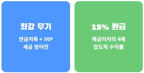 은행 예금 이자가 3~4%인 시대에, 납입만으로 15%에 가까운 환급을 받는 것은 은퇴 전 반드시 실행해야 할 최고의 재테크입니다.