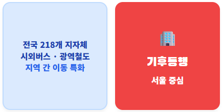 - K-패스 (전국구): 서울뿐만 아니라 경기, 인천, 부산, 대구 등 전국 218개 지자체에서 사용 가능합니다. 시외버스나 광역철도를 이용해 지역 간 이동이 잦은 사용자에게 유리합니다.